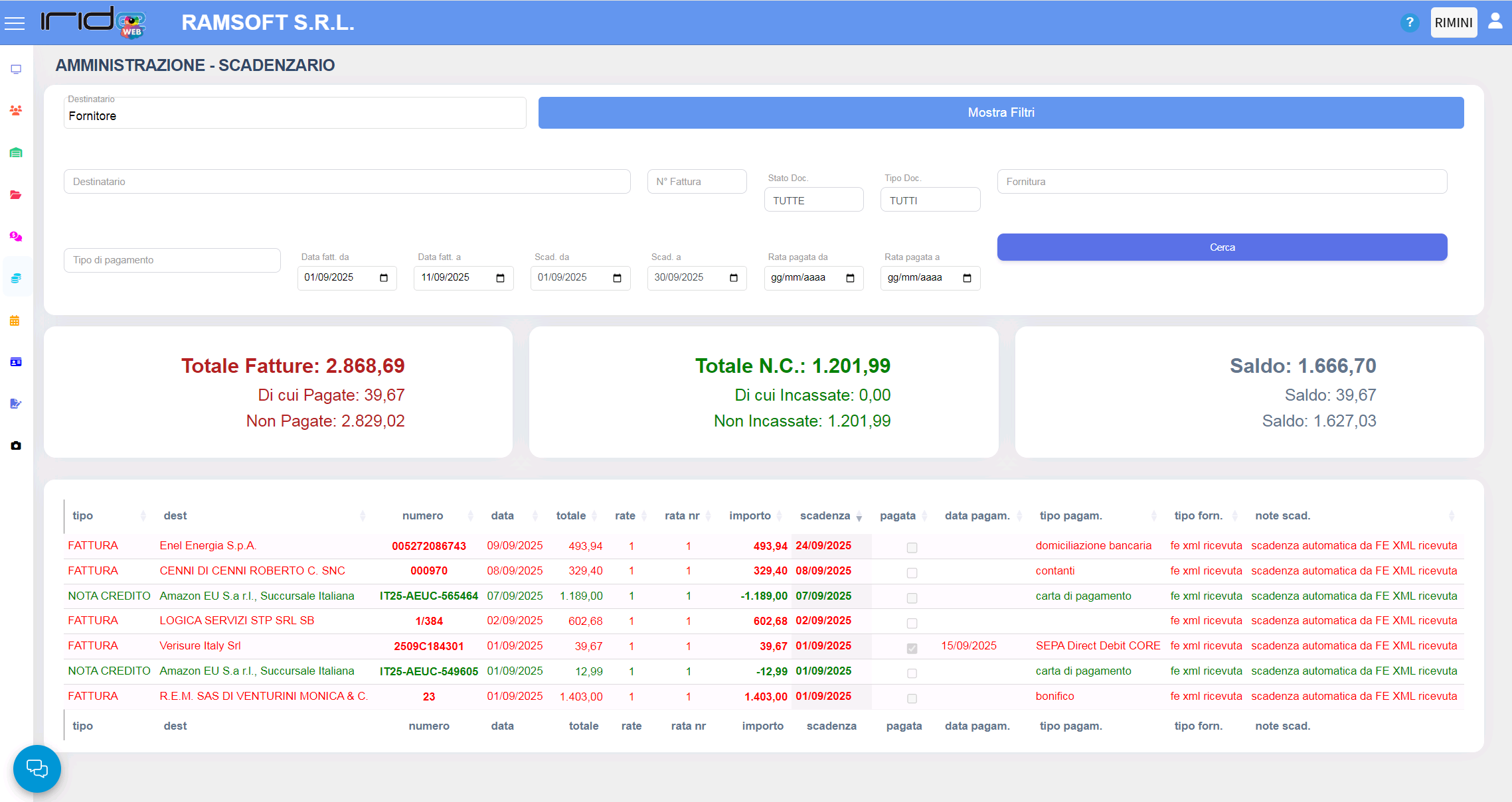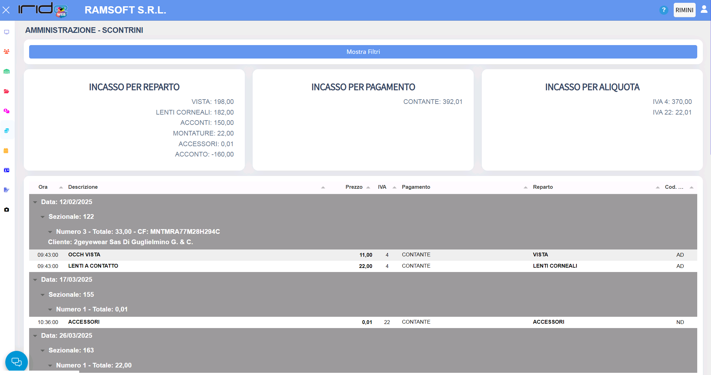 Modulo per la gestione della prima nota, ti permette di registrare tutti i tipi di entrate o uscite, garantendo un controllo accurato dell’andamento economico del negozio. Ogni scadenza di pagamento che sia una rata cliente o fornitore, un incasso giornaliero automatico o manuale, sarà registrata in automatico nella prima nota.
