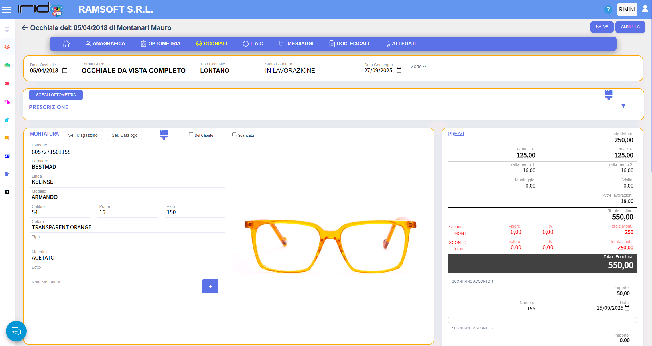 La scheda Stato di Lavorazione Buste Occhiali ti permette di monitorare passo passo lo stato di lavorazione degli Occhiali (‘lavorazione’,’da consegnare’, ‘consegnato’, etcc.) di tutte le buste lavoro registrate, consentendo l’invio automatico di Sms o WhatsApp al cliente per la consegna finale o per conoscere il grado di soddisfazione sull’ utilizzo.