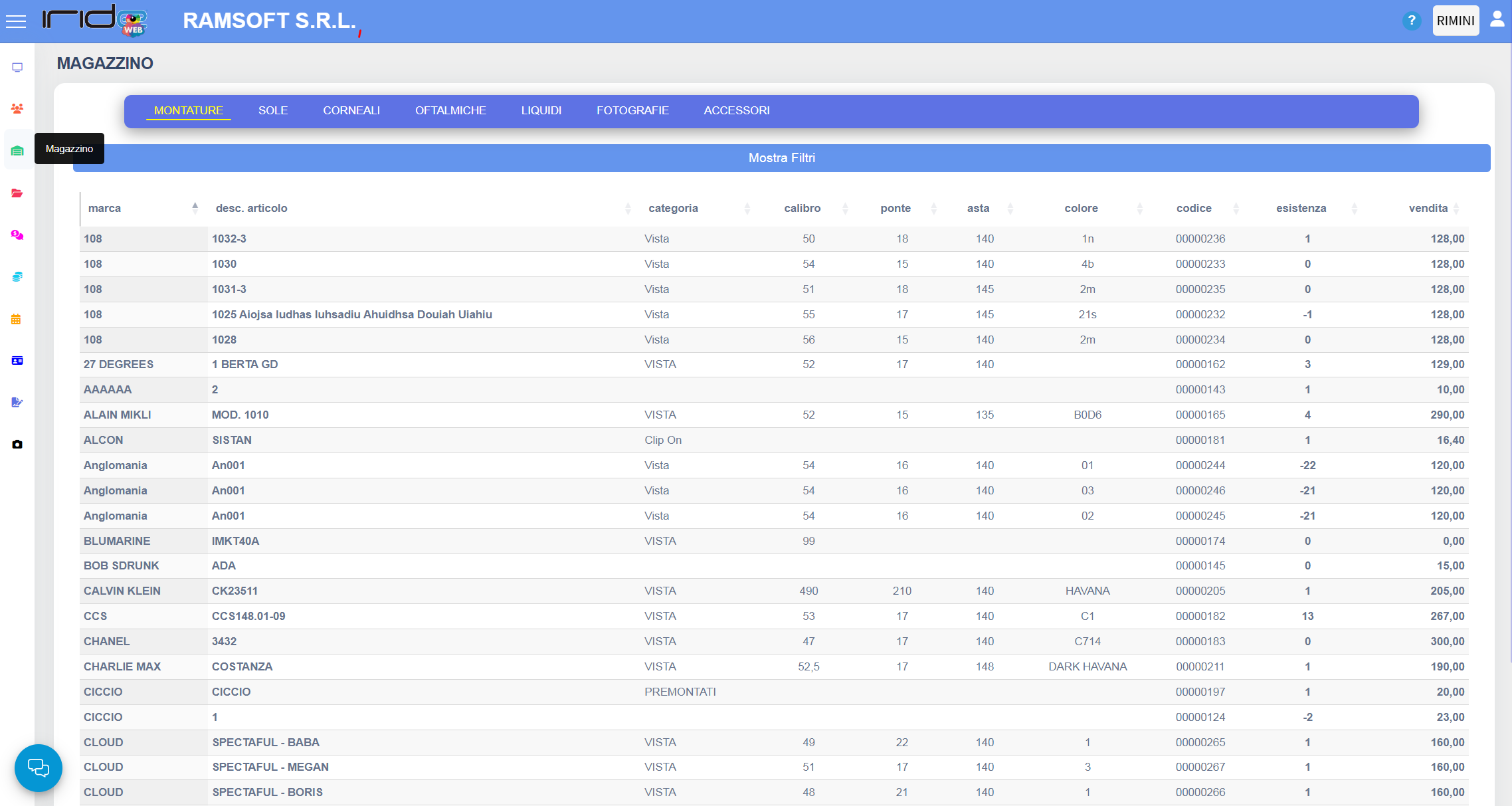 Modulo per la gestione del magazzino interno. Sarà possibile utilizzare fino a sette diversi generi di magazzino: Montature, Occhiali da sole, Lenti Oftalmiche, Lenti a Contatto, Liquidi, Fotografie, Accessori. E con un l’utilizzo di lettori di codici a barre il carico e lo scarico degli articoli sarà semplice e immediato. Sarà possibile creare e stampare il proprio codice a barre interno sfruttando le stampanti termiche Dymo. Collegando un registratore di cassa compatibile, permetterà di stampare in automatico scontrini, chiusure giornaliere e letture fiscali. Inventari, statistiche, controlli, aggiornamenti automatici dei prezzi di acquisto e vendita saranno sempre a disposizione per agevolare ogni tipo di stampa o verifica periodica.