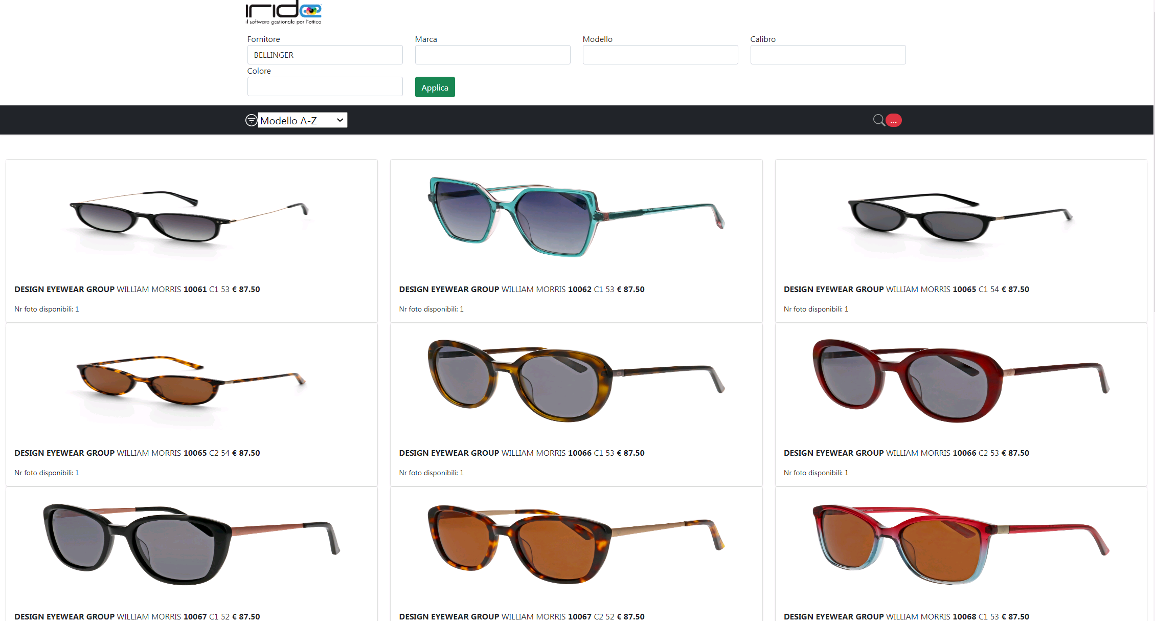 Hai mai desiderato un modo semplice e veloce per accedere alle immagini e alle informazioni dettagliate dei cataloghi occhiali? Con IRIDEFOTO© hai a disposizione un archivio cloud centralizzato con migliaia di immagini e dati degli occhiali dei principali fornitori, tutto a portata di clic.